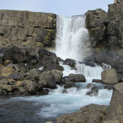 We would being staying the night in Reykjavik but we wanted to fight off the jet lag by getting out and doing the Golden Circle tour. The Golden Circle is a popular tourist route in southern Iceland. Our first stop was Þingvellir National Park which is where the Eurasian and North American tectonic plates meet. The tectonic activity creates many rifts in the ground filled with absolutely clear water. We found a waterfall and explored the park.