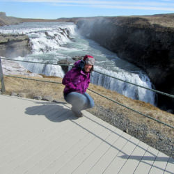 After enjoying the park for a couple of hours we headed for Gullfoss or Golden Falls (Probably where the Golden Circle got its name from.) Even though it was in the 40s Fahrenheit the wind was so unrelenting that we realized we had forgotten gloves and our hands retreated into our pockets. We did have our warm hats to keep our heads warm. The falls were definitely worth the cold but we were glad to get back in the car.