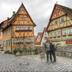 We made the other connection just fine and arrived at our destination, Rothenburg ob der Tauber, at 5 PM. Since we were short on time we took a taxi to our hotel and immediately headed up the hill to the city on foot. The hike up was steep but worth it. The city is a thousand year old medieval town. It has amazing period architecture and drove Devin crazy trying to take photos of it all.