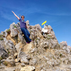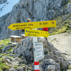 There were all sorts of trails at the top going in all different directions. They even had the yellow signs pointing out that Mittenwald was 2 hours away. More like an entire day for us. We did do part of the Passami Rudweg trail.
