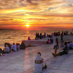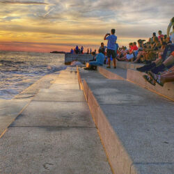 The sea organ area is much more crowded than before in anticipation of the sunset.
