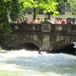 Turns out this pumped up water made a frothy mess when it entered the park and it was great for surfing! Simply attach a rope to the bridge, hop on your board and go! But the Germans are engineers you see so this wasn’t quite good enough. They figured out that you can add a plank which eliminates the froth and the need for the rope and so the rest is history!