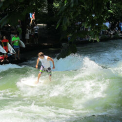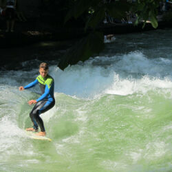 Turns out this pumped up water made a frothy mess when it entered the park and it was great for surfing! Simply attach a rope to the bridge, hop on your board and go! But the Germans are engineers you see so this wasn’t quite good enough. They figured out that you can add a plank which eliminates the froth and the need for the rope and so the rest is history!