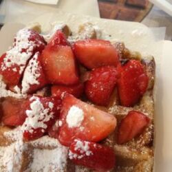 Waking up we headed to get our waffles for breakfast. We were hoping for our nacho cheese type waffle but we were too early as only breakfast type waffles were being produced. I picked up a liege waffle with strawberries and Devin had a chocolate filled waffle. I’m so happy that Brussels has breakfast food that is generally missing in many areas of Europe.