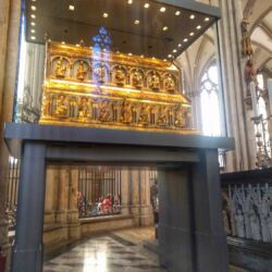 The main event in Cologne is the Dom. Dom is cathedral in German. It’s an impressive church. One of the treasures it contains is the Shrine of the Three Kings. Yeah those guys from the Coat of Arms bones are kept here. In a gold hut of sorts.