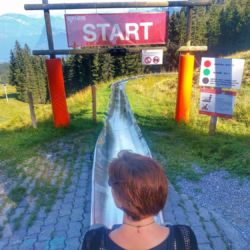 Yeah the picture sucks but we were too excited to snap any decent pictures. It’s an alpine roller coaster. You go down on individual sleds in a steel half pipe. It’s actually quite redneck.