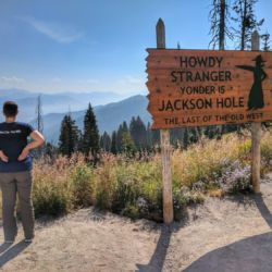 Entering from the south we made our way to Jackson, WY.  Sometimes it’s called Jackson Hole getting its namesake from when valleys were referred to as holes.  We stopped on top of the Teton Pass to stretch our legs and look at nature.