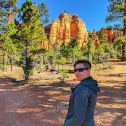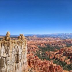 Uninspired we continued on the rim trail to sunset point where we came across a park ranger giving a talk about the parks geology. This is when we learned that the canyon is not a canyon. It was not formed by a river rather by water freezing into ice. The Native Americans called this place “red rocks standing like men in a bowl-shaped canyon”. The spires are called Hoodoos which are tall, thin spires of rock that protrude from the bottom of an arid drainage basin or badlands. His talk was very informative and you can tell he was extremely passionate about his work and the parks.