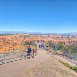 Uninspired we continued on the rim trail to sunset point where we came across a park ranger giving a talk about the parks geology. This is when we learned that the canyon is not a canyon. It was not formed by a river rather by water freezing into ice. The Native Americans called this place “red rocks standing like men in a bowl-shaped canyon”. The spires are called Hoodoos which are tall, thin spires of rock that protrude from the bottom of an arid drainage basin or badlands. His talk was very informative and you can tell he was extremely passionate about his work and the parks.