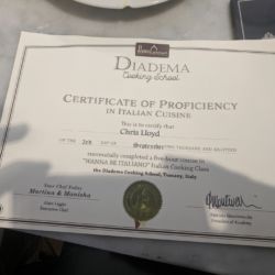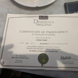The last an most important piece of was a certificate. Linda and I are now certified in Italian cooking.