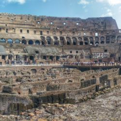We met our tour guide near the Colosseum metro station. He was wearing a Beatles shirt and had a Pirate flag. We found our man. The Colosseum took eight years to build and was completed in year 80 of the common era. Given its history, it has held together well. Originally a lake was at its location and when drained made for an excellent below stage area.