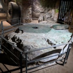 We descended a handful of stairs and upon entering the next room, we were greeted by the site of olive oil press equipment. Apparently in the middle ages, Orvieto was super crowded. In order to maximize living space, they moved a lot of their work space underground. We were shown a fancy donkey powered wheel that was used to crush the olives and an even fancier press for, you guessed it, pressing the olives. Fun fact, they would press the olives multiple times adding water on the subsequent presses. The first pressing was the good stuff and the others were of lesser quality.