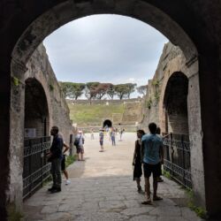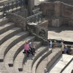Viale delle Ginestre led us directly to Station 11 in Zone VIII (Quadriportico dei teatri o Caserma dei Gladiatori). From here we tried our best to avoid the tourist mobs. Unsuccessfully because 1) they’re everywhere and 2) they claim all the shady spots. From here we wandered to station 10 (Teatro Grande) and we had some of our first potluck tour guiding.