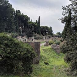 I really wanted water. The bathhouse and the fountains were just teasing me so I led the way to Zone IX and Casina dell’Aqulla where the map indicates a scenic overlook, food, and water! It got part of it right. There were in fact bathrooms and a scenic overlook. No food. No water.