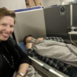The flight was very nice and we arrived in Munich much less tired than we normally do on Trans-Atlantic journeys. We had three hours to kill in Munich and after doing a couple of laps we found some reclined chairs to people watch.