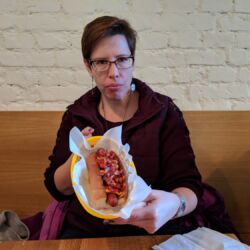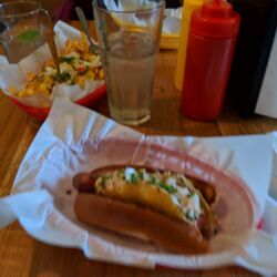 Nearby there was a hot dog place that we tried out. Devin and I got lemonade but mine was enhanced with thyme. I had a Ruben hot dog, Devin had a New York style hot dog, and we shared some chili cheese fries. Everything was exceptional.