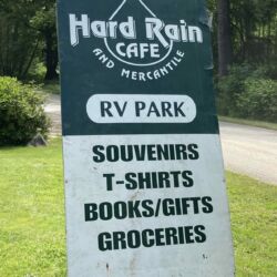 We ended up having Taco Time for dinner. Not bad but certainly not the pub food I’d been planning on. Ah well. At least the campsite was fun to explore. I got to wave through the mist at Canada and they had an old boat just hanging out between campsites.
