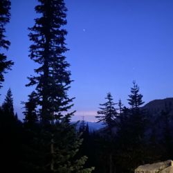 Chris here: Early on I got spooked by what I think was the sound of a coyote. It was dark and we couldn't see anything. While I was mentally figuring out how to use my hiking poles as defensive weapons my other two hiking companions showed no signs of concern.