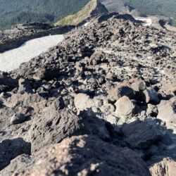 When you research this hike, they break it into 3 key terrains broken up by 2 main waypoints. The first terrain is the wooded trail and ends at the tree line. The next is the boulder field which ends (allegedly) at the EarthScope Observation Station which helps determine when this mountain will blow again. The final stretch is the vertical beach.