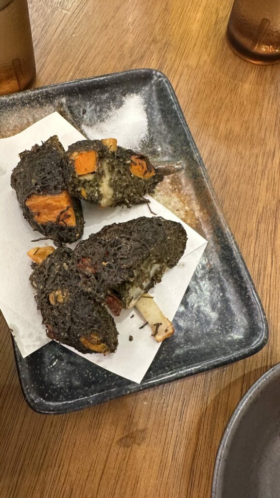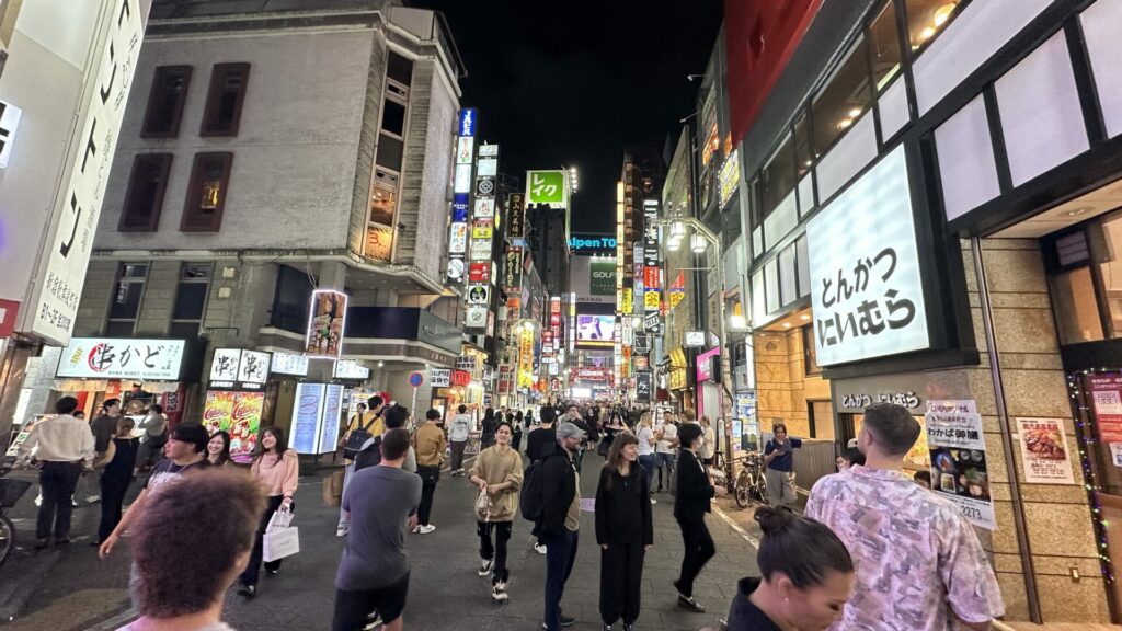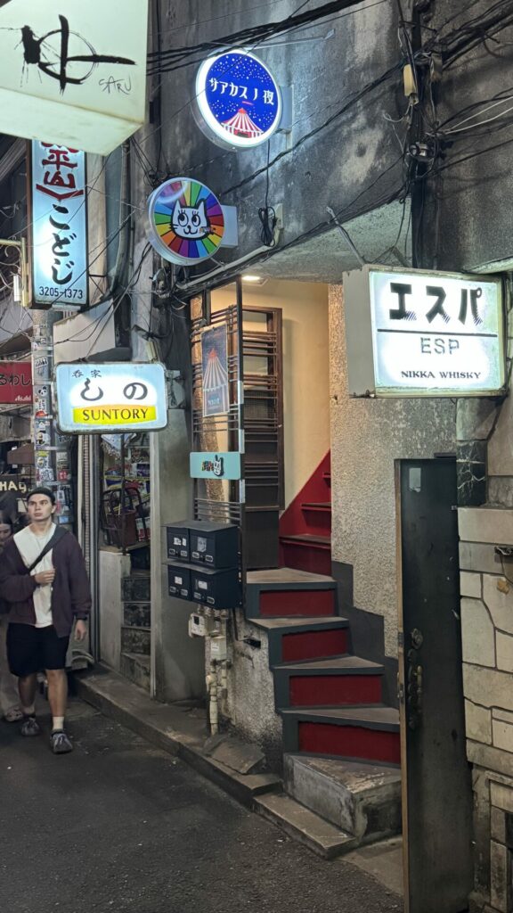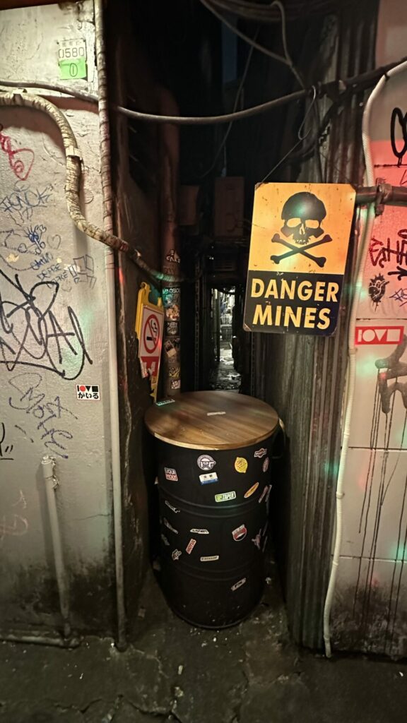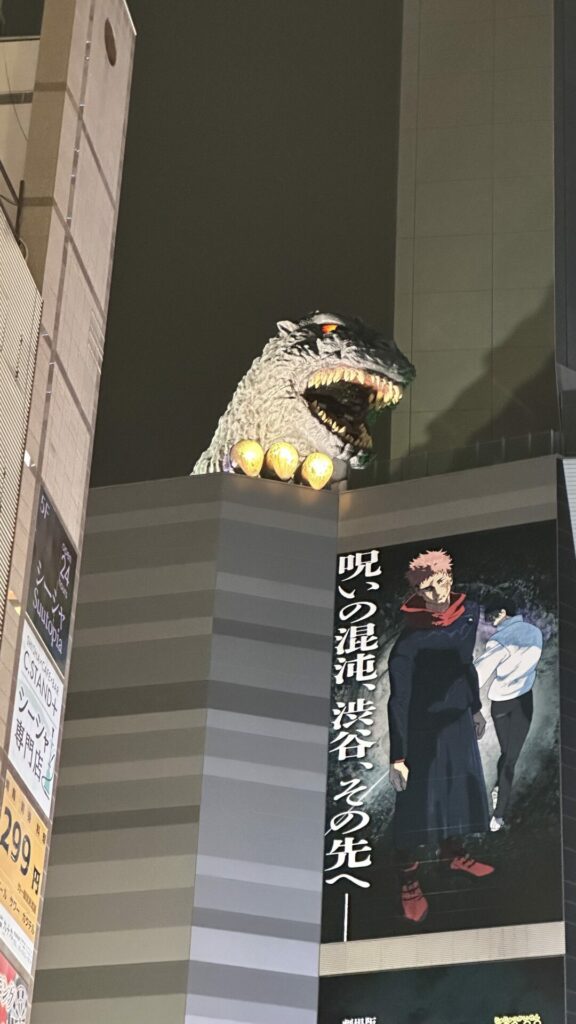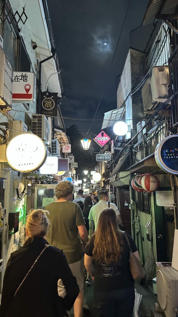 After the first few restaurants, we needed a breather and some steps. Not wanting to let our buzz die down, Joe took us to a Family Mart convenience store to get some road beers. He then took us through a section of Shinjuku that is known for its tiny bars that seat 3 – 4 persons at a time. This area is known as Golden Gai. There are over 200 bars squeezed into this tiny area. Back in food tour mode, Joe got us some Tonkatsu from Tonkatsu Nimura HONTEN to sample while outside in the shadow of a Godzilla seen on top of one of the nearby buildings.