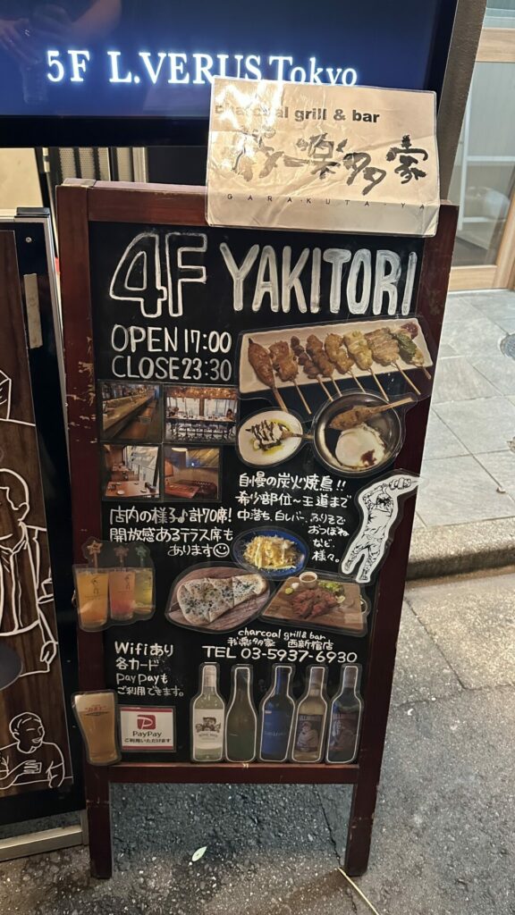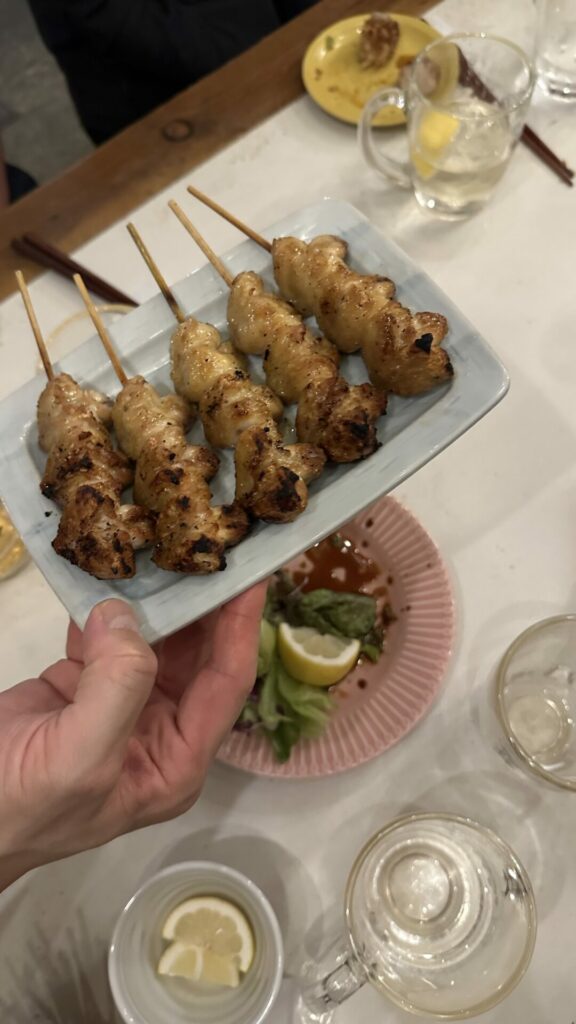 The first place Joe took us to was a gourmet Yakitori place called charcoal grill & bar GARAKUTA-YA on the fourth floor. So many restaurants or shops exist in the upper level of buildings that appear to have no retail presence. Often, you wouldn’t know to ascend, except for a small sign at the base.