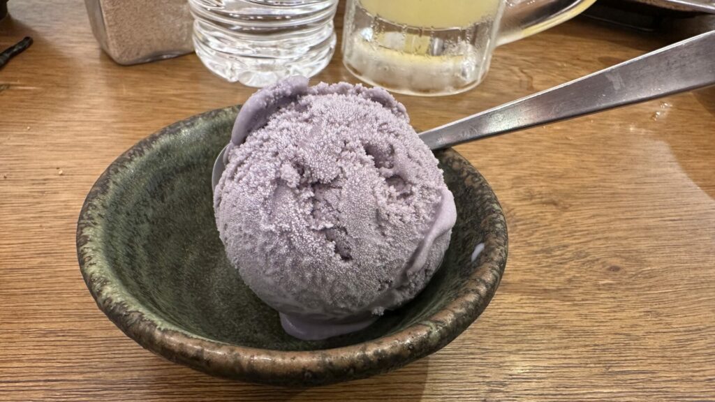 The last stop on the tour was an Okinawan restaurant called Yanbaru main store. There was so much food! We were served Orion beers. Having spent some time in Okinawa, I have had quite a few of those. The Blue Seal Ube ice cream was the star of the show. Pork ribs and squid ink soba noodles were the ones I could remember.