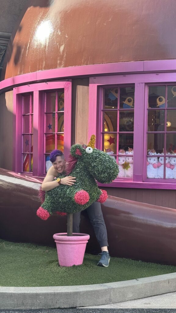 Our first Express Pass reservations were in Harry Potter World. I really wish this franchise didn’t have such a horrible transphobic author. HP World was everything you’d expect it to be. It looks like the town. There’s a ton of Butterbeer and photo ops.  We went on the 2 rides from our Express Pass and then left to spend time with less objectionable franchises.