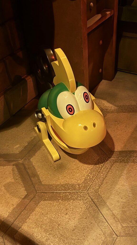 The ride is a race, like Mario Kart, where you’re steering along the course, collecting coins, and firing shells to knock out the competition. It’s chaotic, hilarious, and fun! Highly recommend. My second favorite ride in the park.