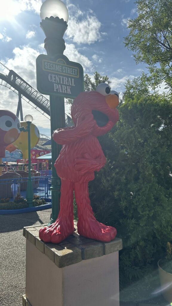 We came. We saw the rides were for kids who are much littler than us. We said hello to Elmo and then headed back out again.
