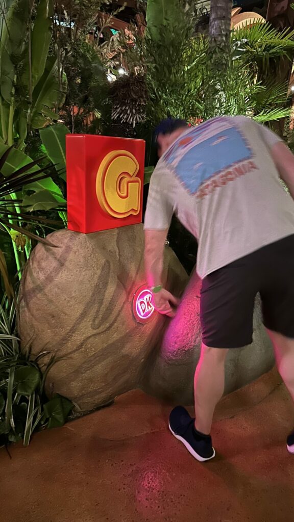 After that, the Collect Them All game began! We wandered around the park collecting coins at the question boxes, finding the hidden 8-bit characters, finding all the letters for “KONG” (just like the game!!!), and the bonus Pikmin.