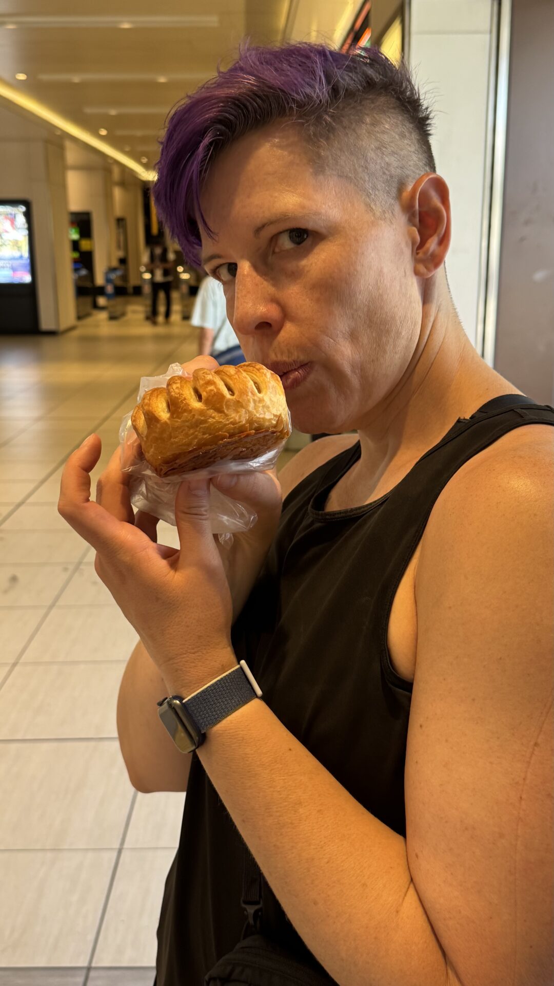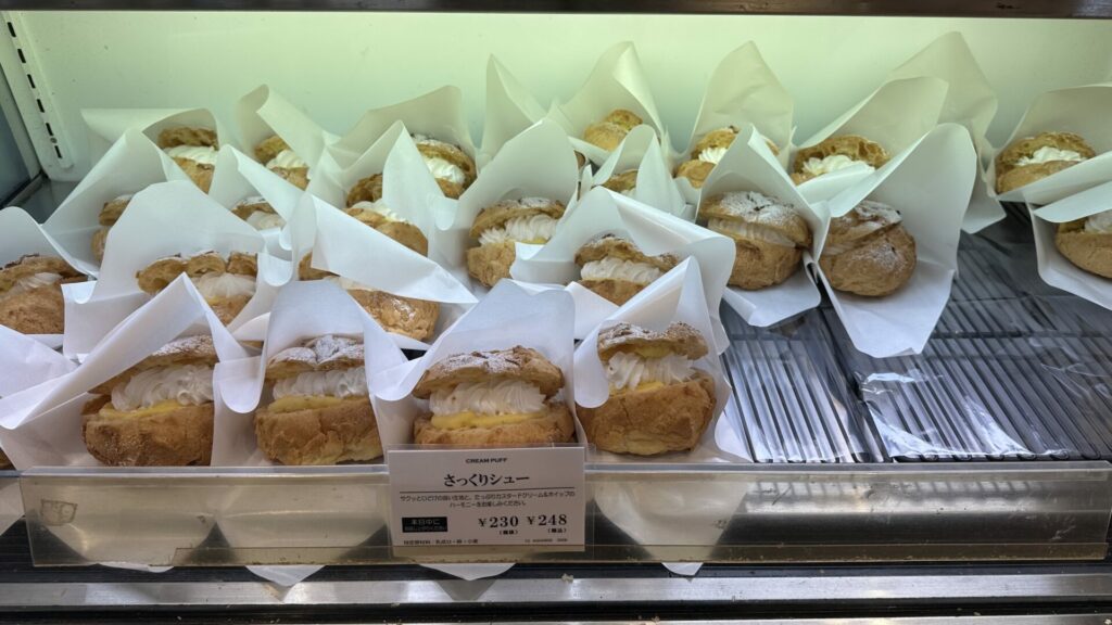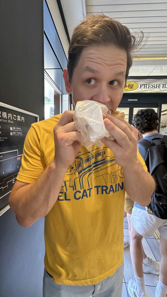 Realizing his captive audience was here for a food tour, Danic took us to a bakery at a train station where we got to pick one sweet treat each. I’ve noticed that a lot of the best restaurants are near public transit hubs. I picked up a cream puff, and Devin got an Almond, Walnut & Caramel Cream Kougin Amann. Both were excellent.