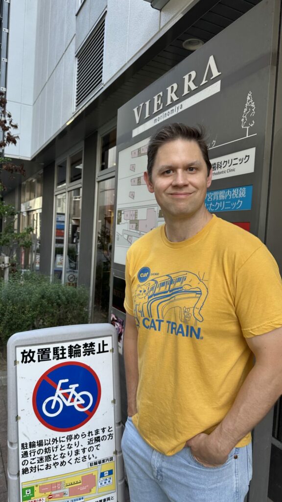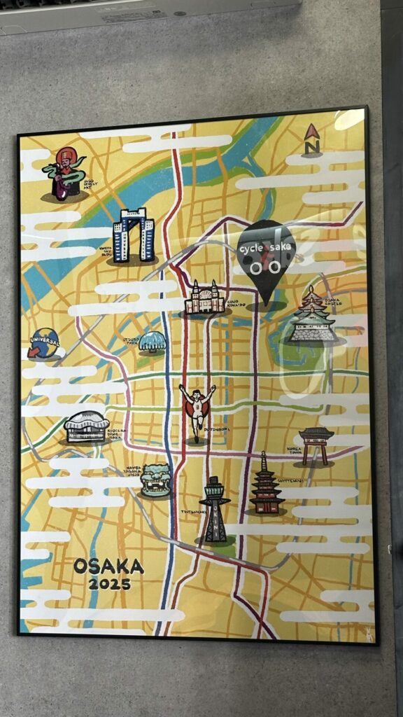 After recovering from a long day and night at Universal Studios Japan, we had a leisurely morning getting coffee and breakfast at our hotel, and then made our way to the bike/food tour meeting place. The four-hour tour started at 10:30, so we planned to take our luggage with us and store it in a locker at the train station.