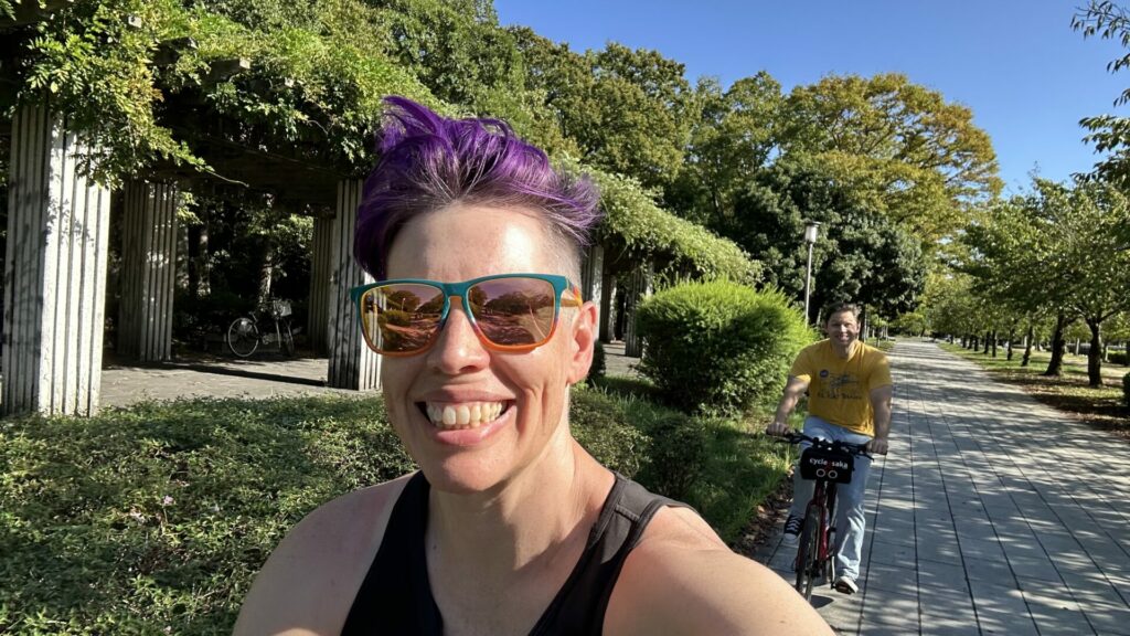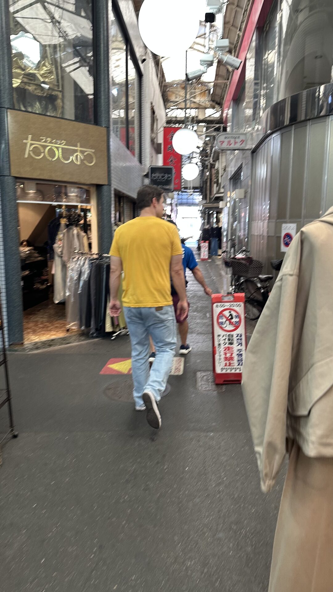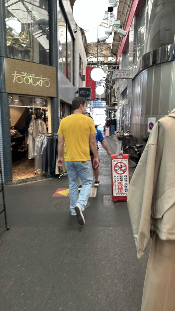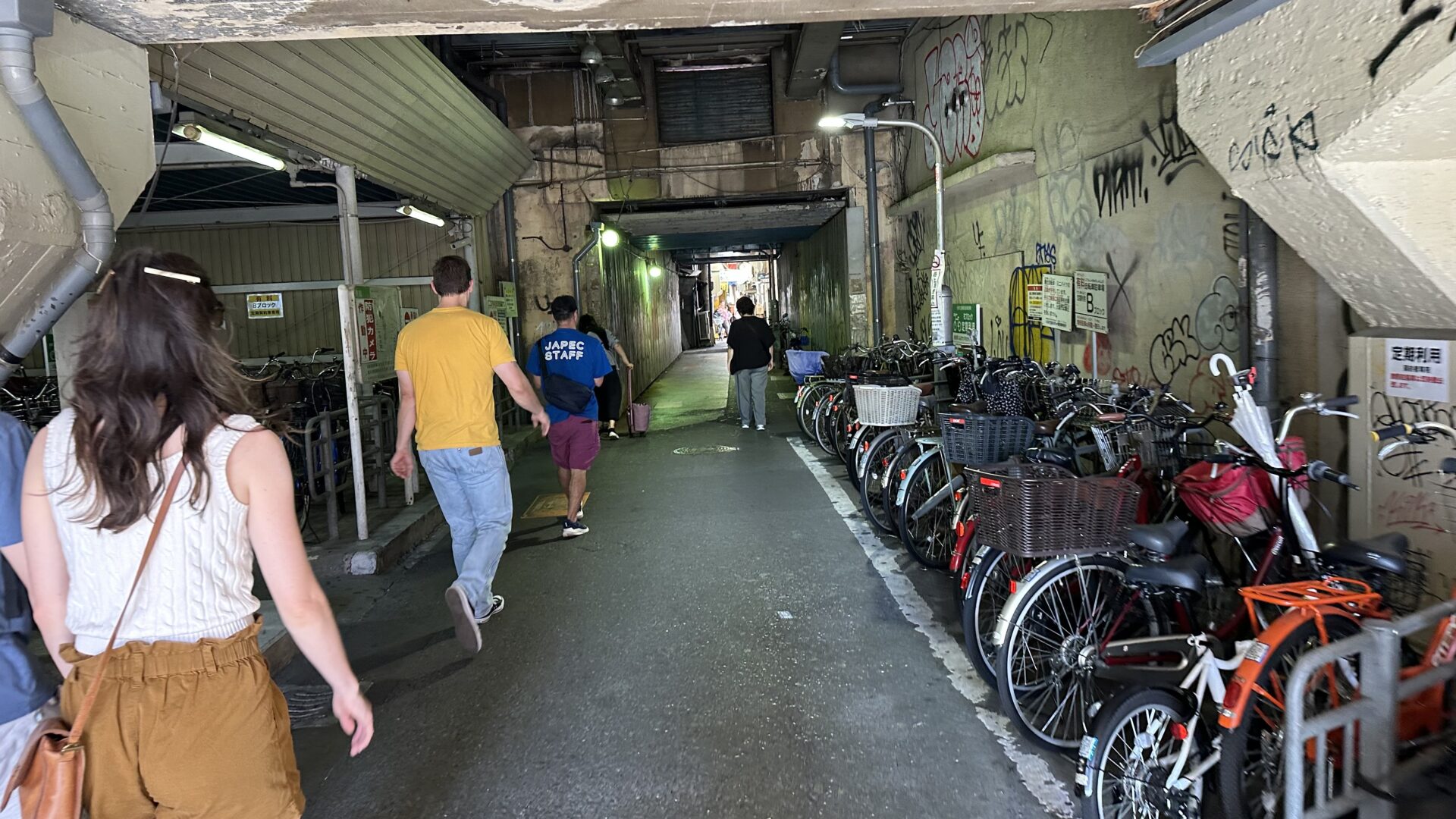 Danic takes us out on the open road, and we quickly get a feel for his style of tour. His attitude is firmly in the camp that it will all work out in the end. Nothing was out of control or dangerous, but there was less oversight than on other tours. Biking in urban Osaka involves transitioning from the pedestrian sidewalk to the road to a back alley, to a narrow shopping street. It can be a lot to navigate if you aren’t prepared. Good news! Everyone in our group is handling it pretty well.