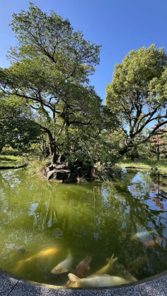 We wandered around the rest of the complex, finding more koi (SO MANY MORE KOI) and a number of trees that survived the bombing, even given their very close proximity to ground zero. I didn’t pet these koi either.