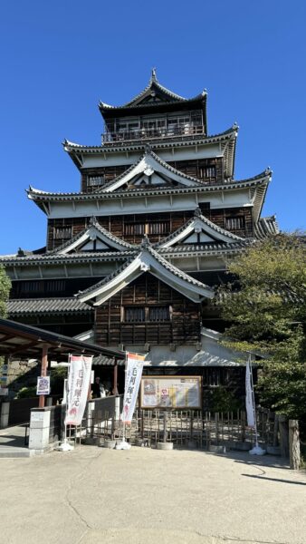 Chris hasn’t been feeling well, so we paused the making of plans last night and decided to play it by ear this morning. He woke up feeling better but not great, so we scrapped the original hiking plan. Instead, I talked him into Plan B, which was an hourish long walk across town to a Buddhist temple that has a waterfall. On the way, we’d check out Hiroshima Castle. Easy Peasy.