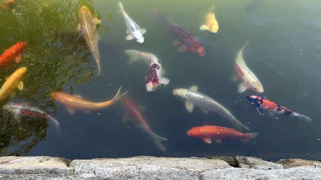 We wandered from our hotel in the vague direction of where Google Maps indicated the castle was. We found a lovely pond with super hungry koi. I wanted to pet them so badly!!! I also wanted to put my finger in the white one’s mouth. I made good choices and did neither of these things.