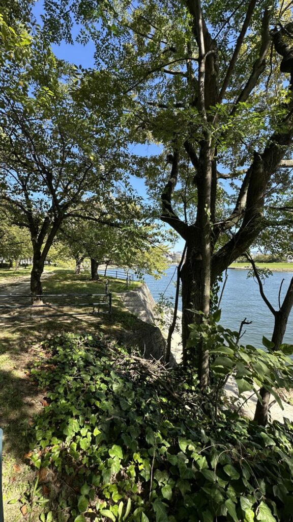 In general, I chose to walk near or through parks when going from Point A to B. Today was no different. Instead of taking a direct path to the temple, I found a riverfront park to explore. It was lovely, although it lacked shade.