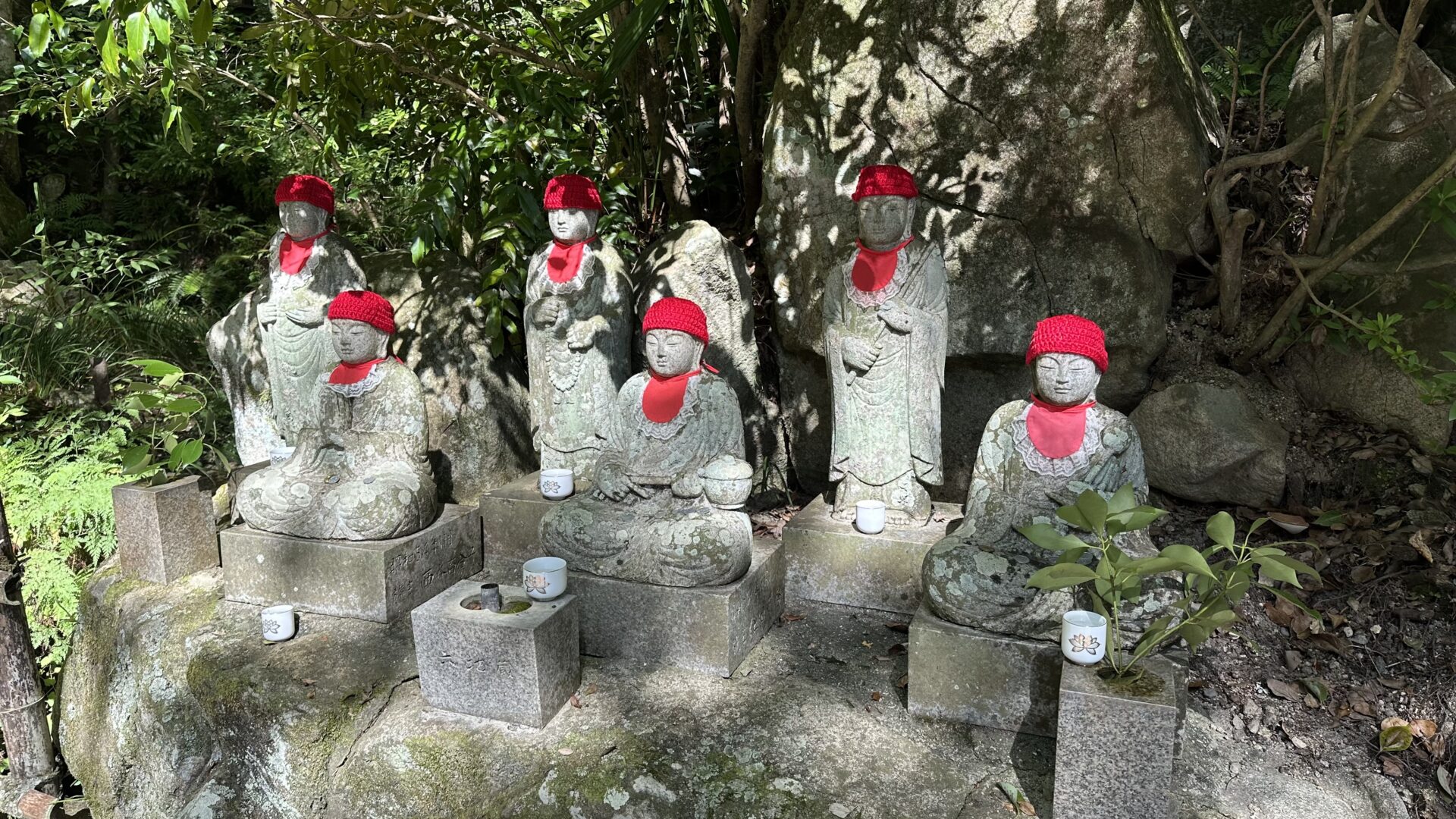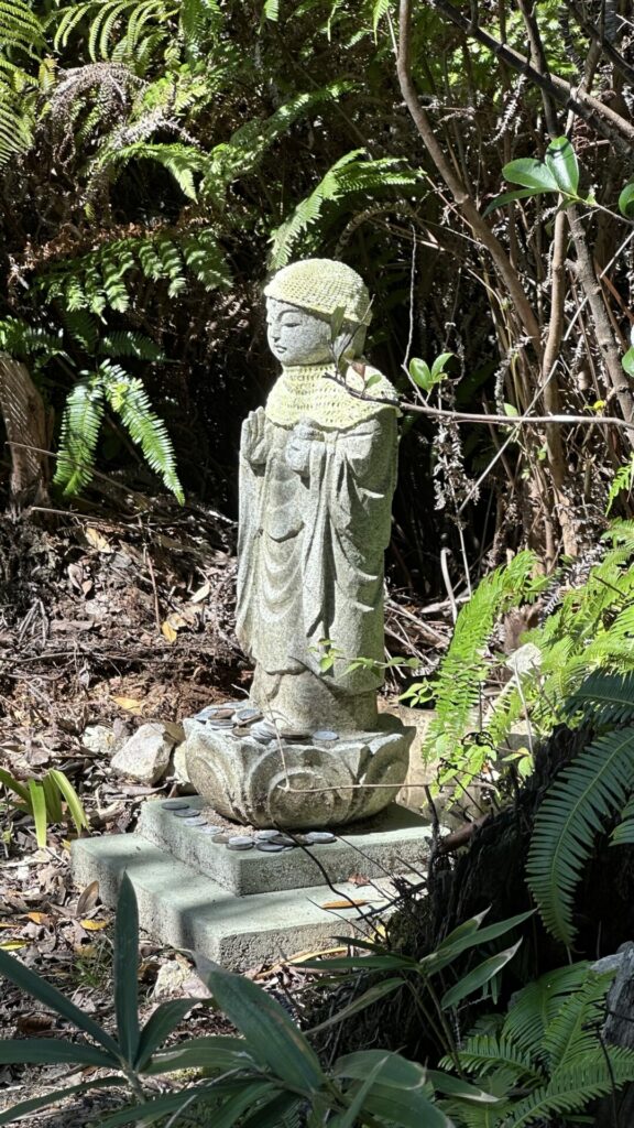 I arrived at the temple and was immediately enamored. It’s super cozy. It’s quiet and shaded. There are statues everywhere, and a number of them have these amazing red hats!