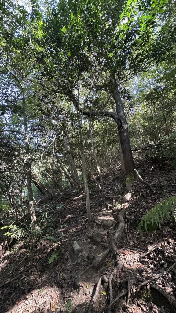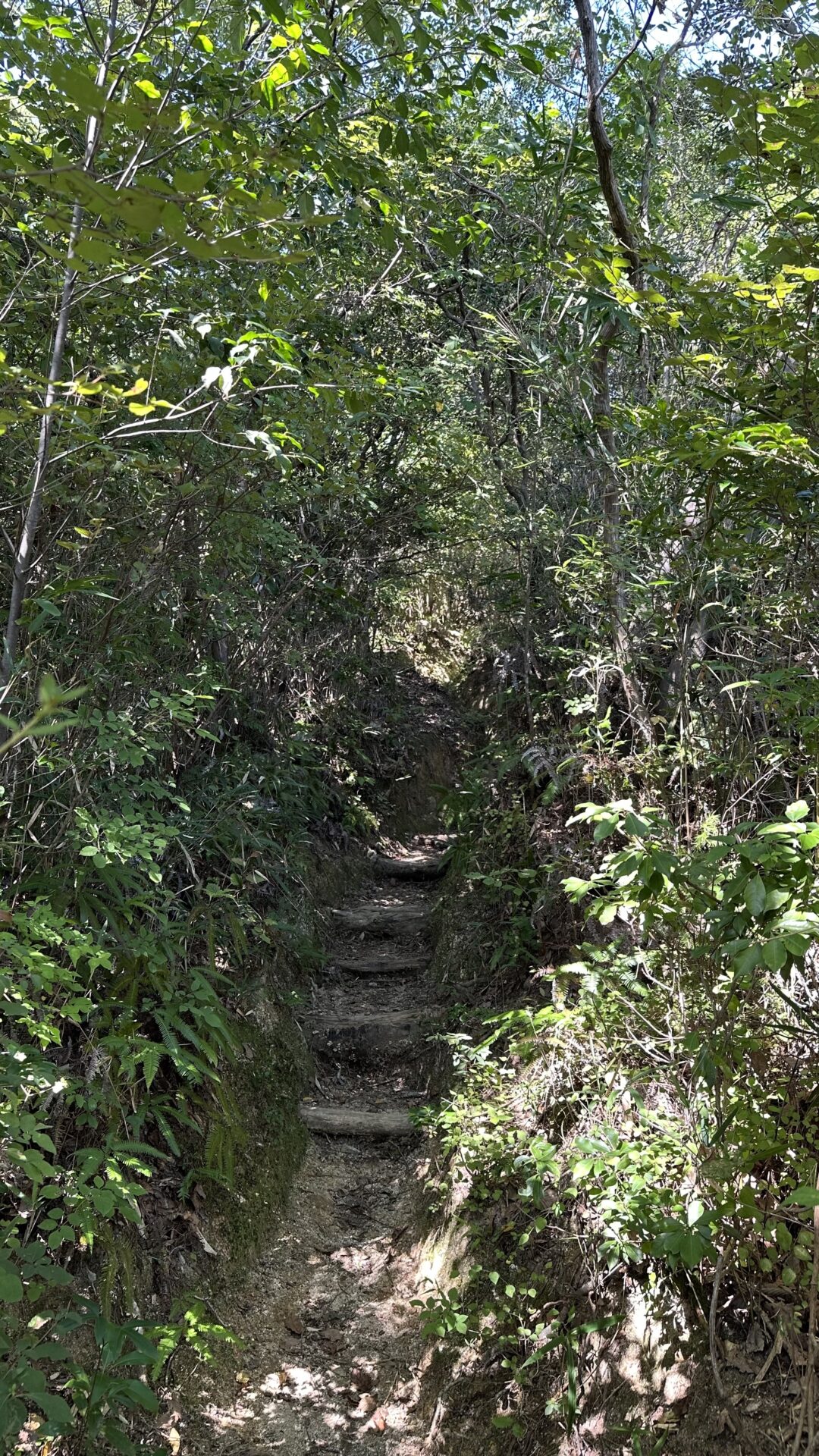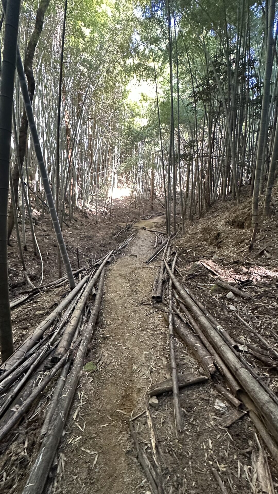 I passed through a really cool bamboo forest. I didn’t know it got that wide and tall! There were a number of downed trees that became guard rails for the trail. It’s at this point that I attempted to send Chris one last message saying my phone was at 7%. He didn’t receive it until I got back to the hotel.