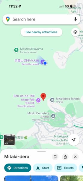 I’m used to Google Maps showing the trails when I hike. Unfortunately, where I was was just a sea of green. The screenshot below is at the exact same point as the signs above. In the States, I’d be able to see which way the trails went. This is why I couldn’t clearly see a path to the waterfall, let alone the loop I accidentally hiked.