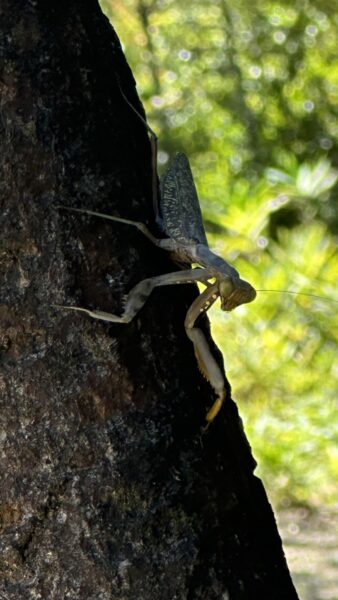 I made a friend while I rested. I’m not sure I’ve ever seen a praying mantis in real life before. It had an interesting gait as it walked up the tree. A bit palsy-like.