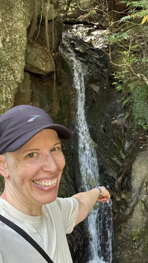 I eventually started to hear running water and realized I was at the start of a long waterfall. I followed the water down and ended back at the temple. Turns out, if I had made different choices after visiting the orange temple and gone left (walking past that family), I would have nearly immediately found a chain of waterfalls.