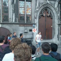 Our tour group was very diverse and we were the only Americans. Our Belgium tour guide spoke excellent English and explained that the people of Bruges were terrible at naming things and showed us the only two wooden houses in the city.